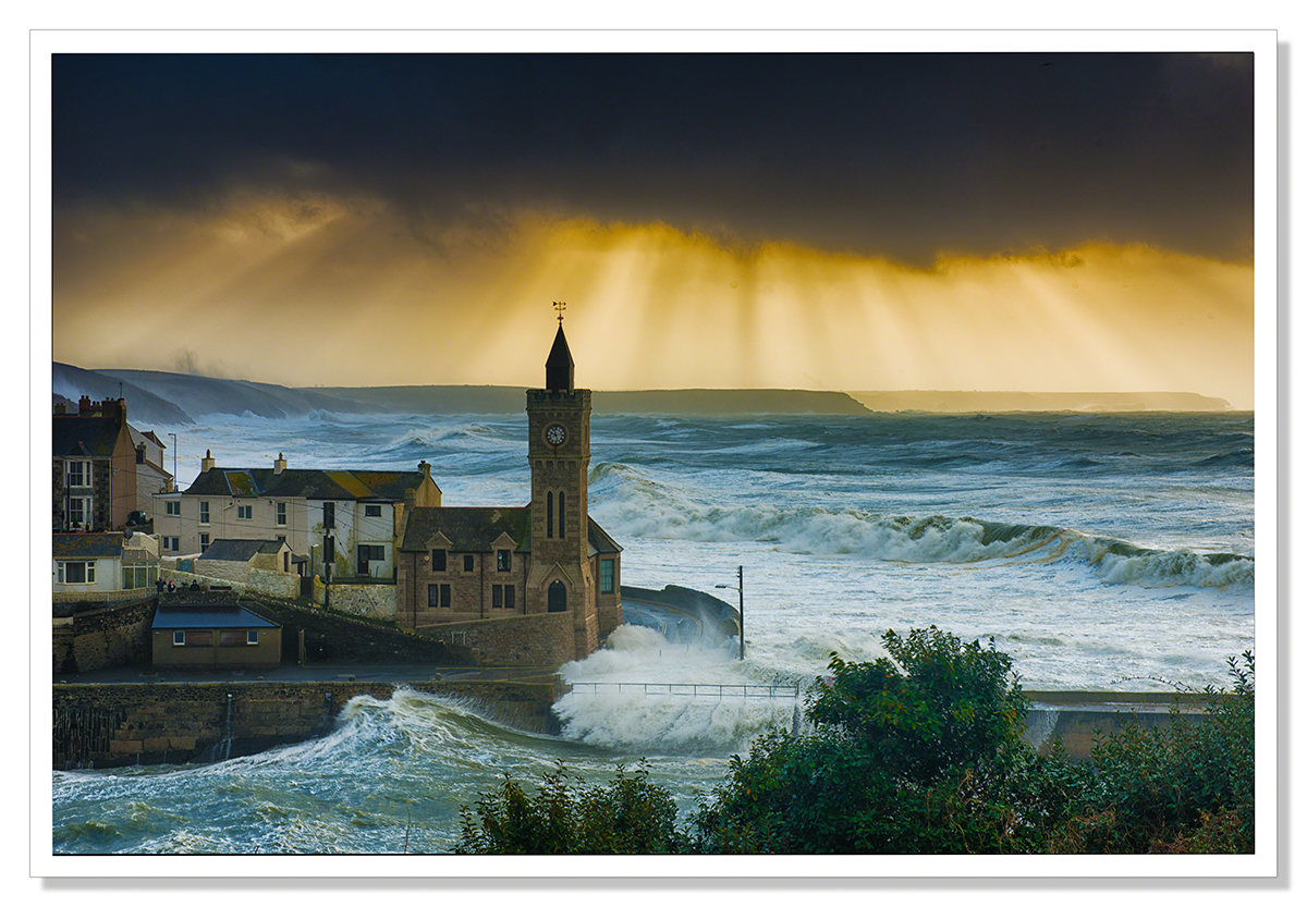 I drove onto the harbour road when I first arrived at the fishing village of Porthleven before first light this morning. Suddenly faced with a wall of water, I reversed rapidly and sought higher ground passing a policeman as I went with cones and tape to close the road…