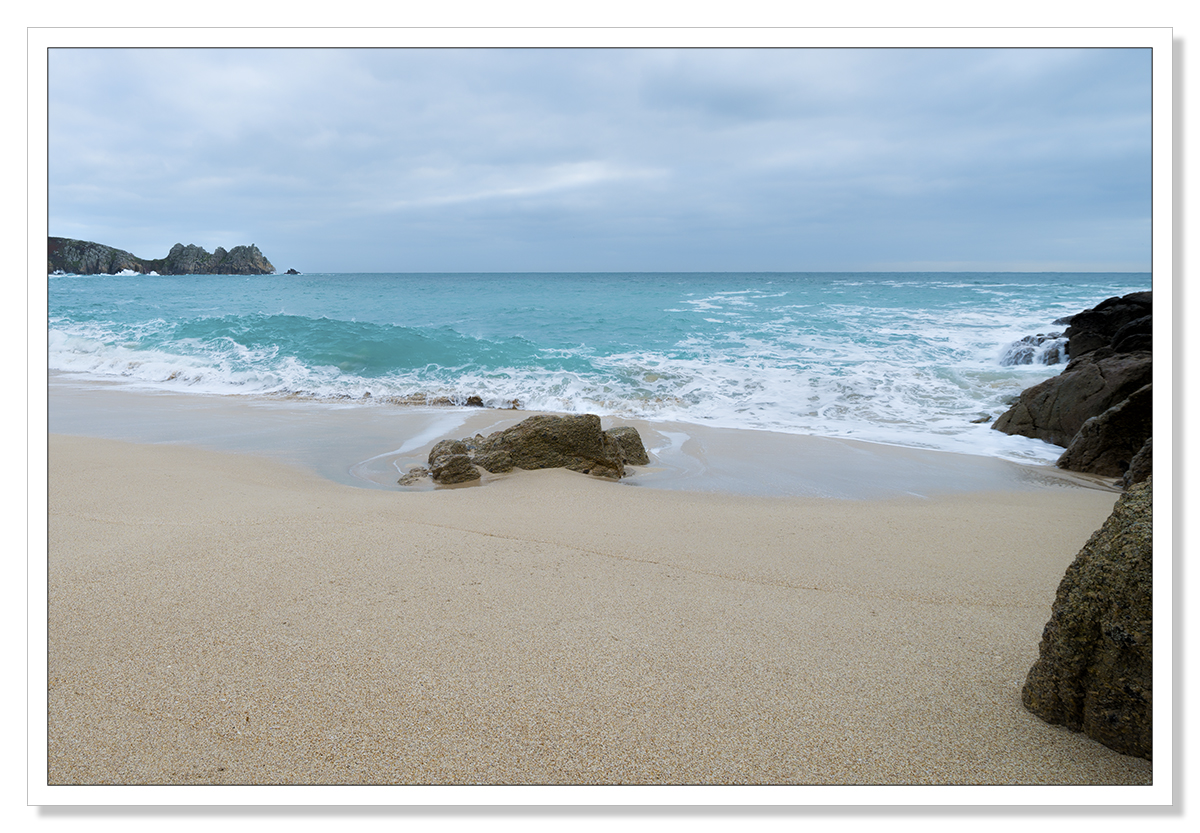 Once of the beauties of a visit to the Minnack Theatre is that right next door, you’ll find Porthcurno. Sadly the sun wasn’t shining when we visited the beach but it’s definitely one of the most beautiful in Cornwall. Imagine a nice warm sunny day, that gorgeous azure blue water, lovely golden sands.. Given that this was taken in December in the UK, it looks pretty good to me. :-)