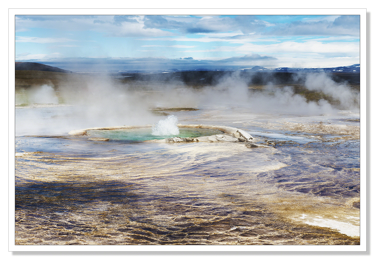 Thank you Lynn! I did sit for quite a while just watching these various springs and fumaroles. The Icelanders have given them all names which I found rather endearing. I came away feeling very relaxed and happy. It felt like a very positive place to be. A place where one can really connect with the elemental power that makes our earth what it is. It is a very sensory experience as you point out. The steam wafts constantly, you can feel the heat and the moisture, the smells and of course the sounds as the springs gurgle and the fumaroles spit. :-)