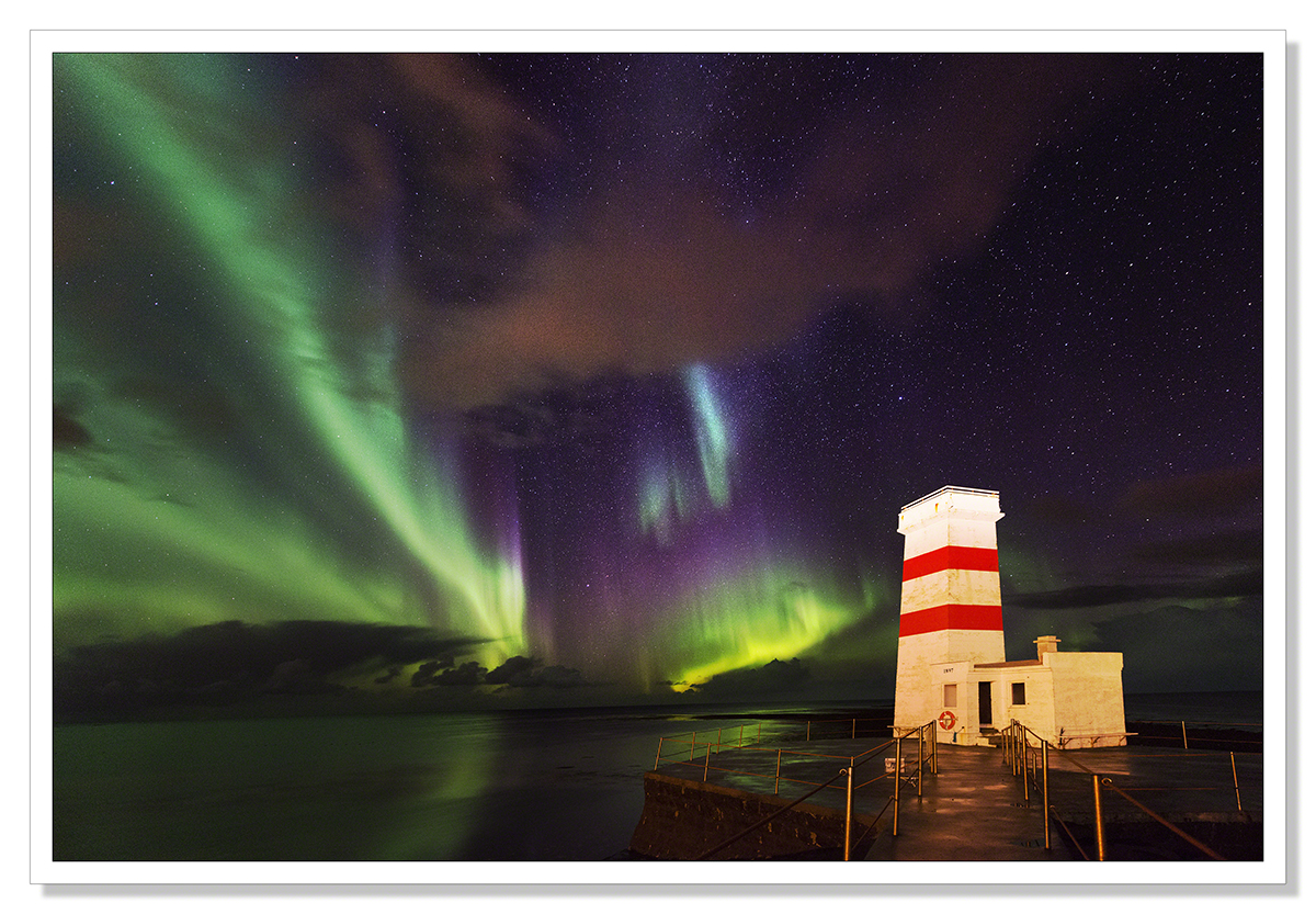 The weather here in Iceland had been awful all day. But ever hopeful, after dinner I set off for Grotta Lighthouse in the west of Reykjavik. As I pulled into the car park and looked up, the clouds parted momentarily to give me a taste of what might be before closing in again. The rain started and I thought that was it. My one chance at a really decent show of the Aurora Borealis and the weather was not playing ball.