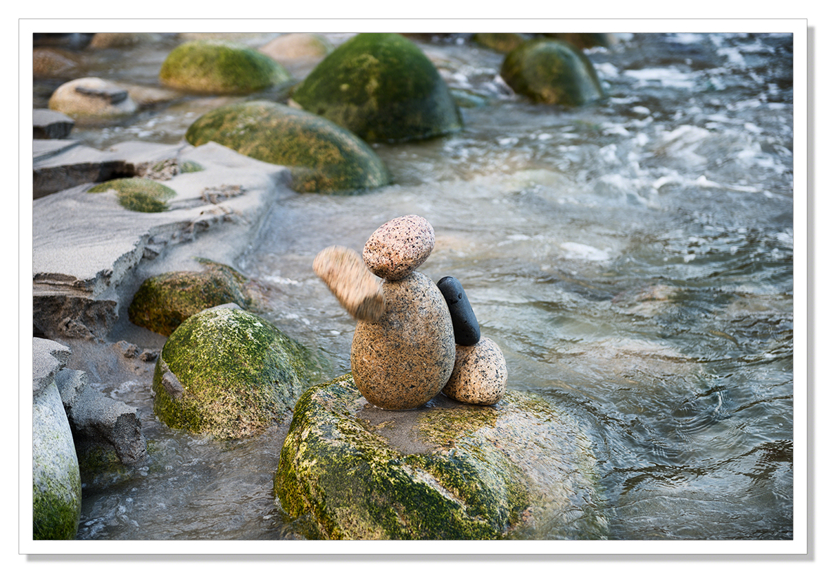 While I was visiting Porth Nanven in the Cot Valley last week, waiting for the light that didn’t materialise ( it was overcast and the light was very flat) I had a bit of a zen moment.. My balancing pebble installation would naturally be temporary with a rising tide.. Hadn’t realised how temporary mind you..