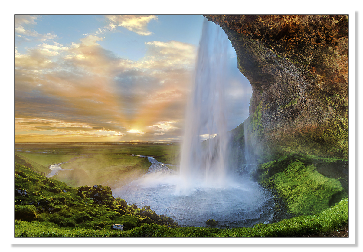 The Seljalandsfoss pictures were bizarrely taken at midnight after a very long day of commercial photography in the central highlands for a Reykjavik car hire company. Getting back to the apartment late after a long and difficult drive on deeply rutted dirt roads, I saw the barely setting sun and I knew my day wasn’t over. I had to make the hour long drive to the falls. I’m so glad that I did.