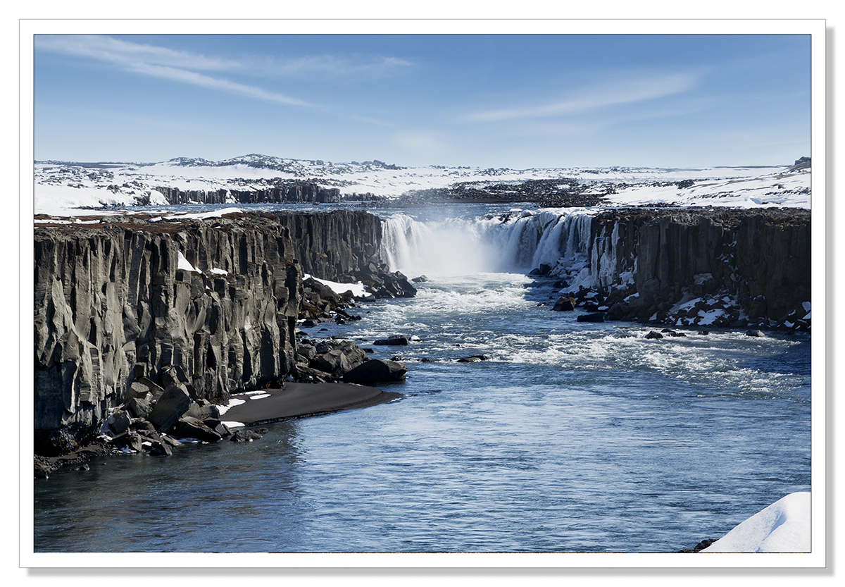 The final photograph is of Selfoss. This waterfall is just a little upstream of Dettifoss. At just 11 metres in height, Selfoss is dwarfed by Dettifoss but a nice waterfall nonetheless. You’ve probably gathered by now, from this post and others about waterfalls in Iceland, that the Icelandic word for waterfall is foss. There are hundreds of waterfalls in Iceland so when travelling around, if you see something ‘foss’ on the map, it’s probably worth investigating. If you like waterfalls that is.. :-)